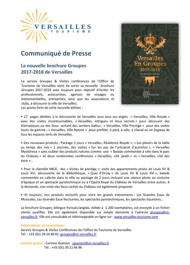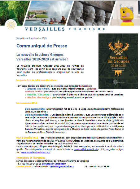 Nouvelle brochure Versailles en Groupes 2019-2020