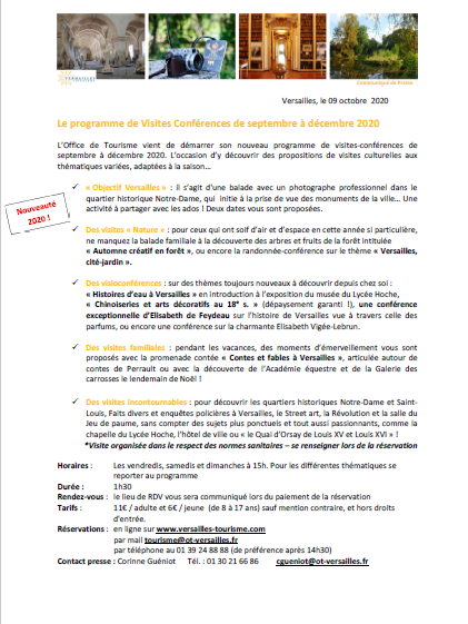 Nouveau Programme Visites Conférences Septembre Décembre 2020